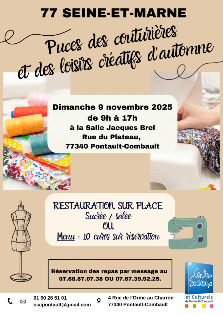 Plus près dans la temps, passez me voir au puces de couturières à Pontault Combault (77)